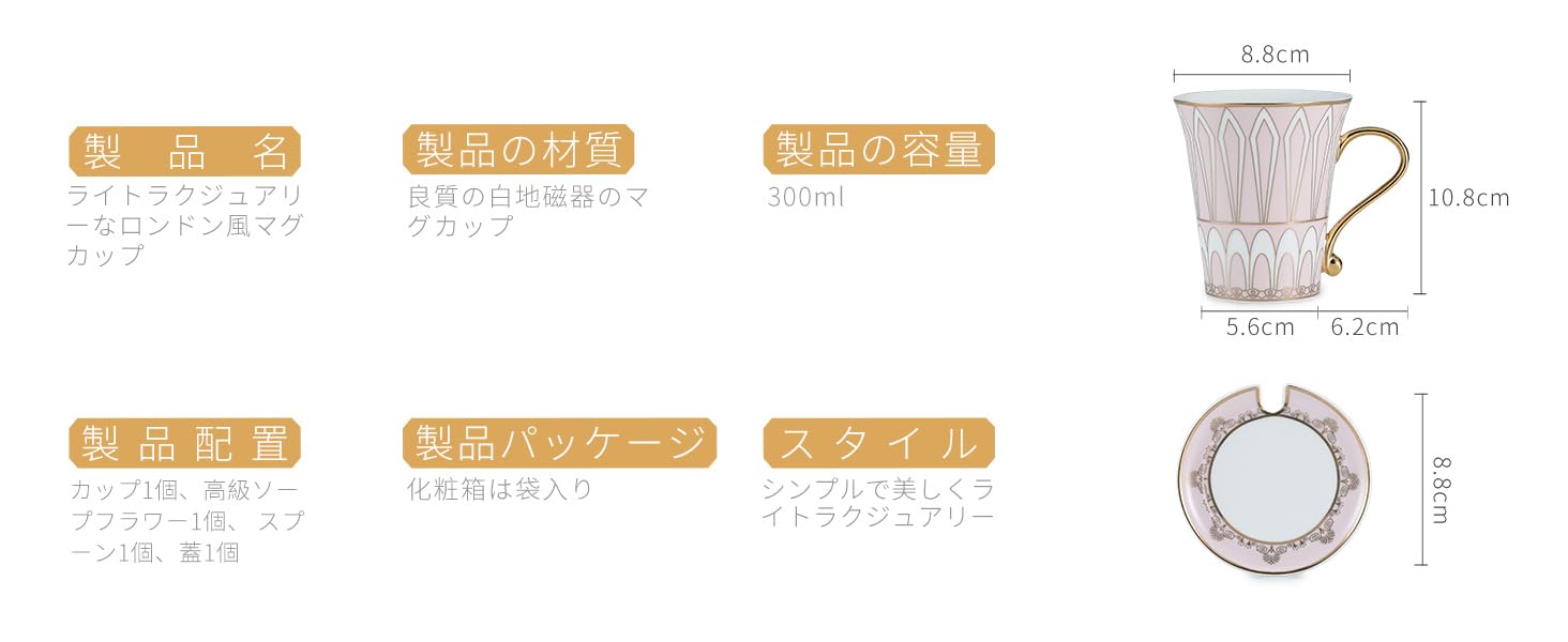 - 職人による手作りの優れた品質✔コーヒカップには良質でエコ、無鉛・無毒の陶磁を採用。オシャレなパッケージで、内部はシルク張り。贈答品用なので、さらに包装する必要はありません。300㎖マグカップ(ピンク)×1,高級ソープフラワー(ピンク)×1,カップ専用ふた×1、スプーン×1、黒と金のメッセージカード入り(メッセージが書き込めます)