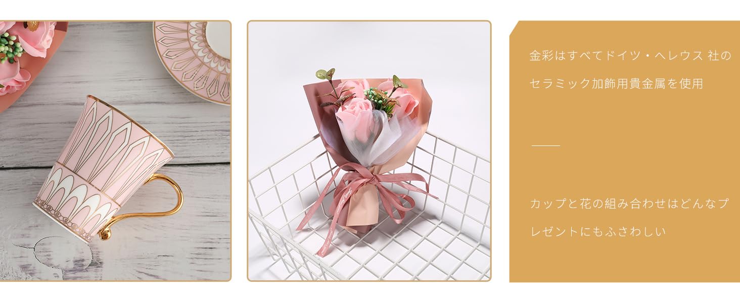[ソープフラワー 花束コーヒーカップセット ]さまざまなドリンクの容器として最適。おしゃれなマグカップ はお気に入りのアイスコーヒー、ビール、ウィスキー、花茶またその他の飲み物を暑い日に冷たいまま、寒い日に暖かいまま楽しめる。おしゃれなギフトボックス入りなので、誕生日、男性用、父の日、母の日、女性用、クリスマス、バレンタインデー、敬老の日などの記念日に最適、厳選された多様な組み合わせをお求めできる